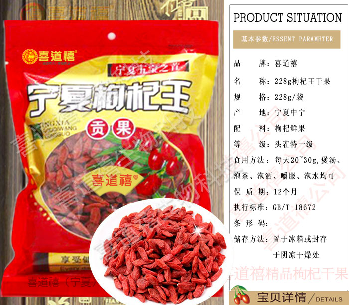 產(chǎn)品名稱:喜道禧228g枸杞王枸杞